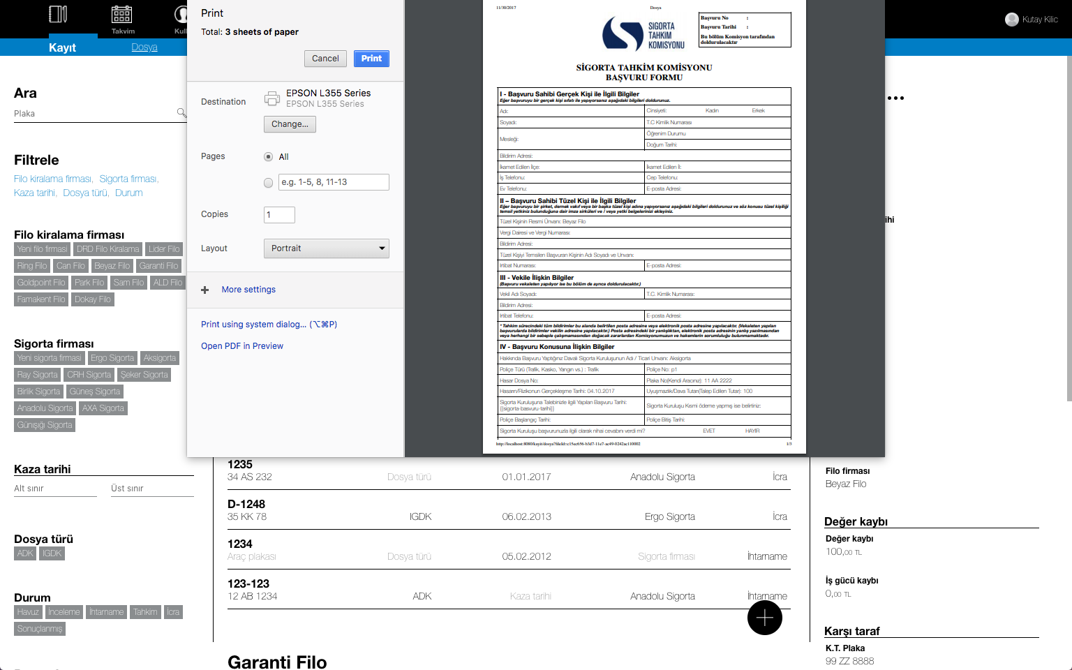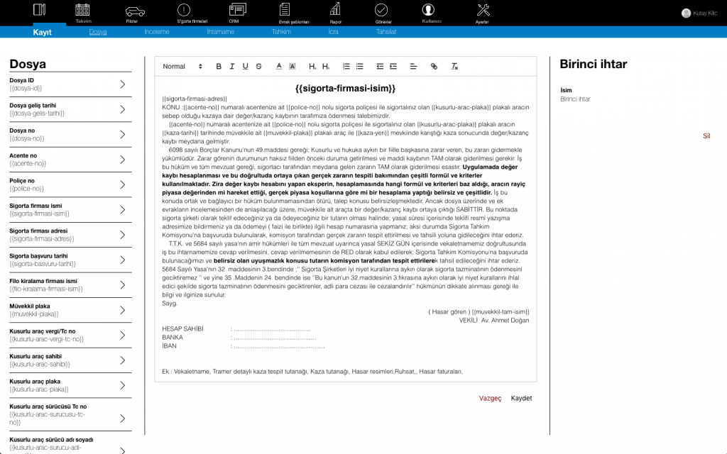 Tüm dilekçe şablonlarını bir defaya mahsus oluşturarak herhangi bir araçla ilgili ihtar, ıslah, ek beyan ve tahkim dilekçelerinizi yazdırabilirsiniz.